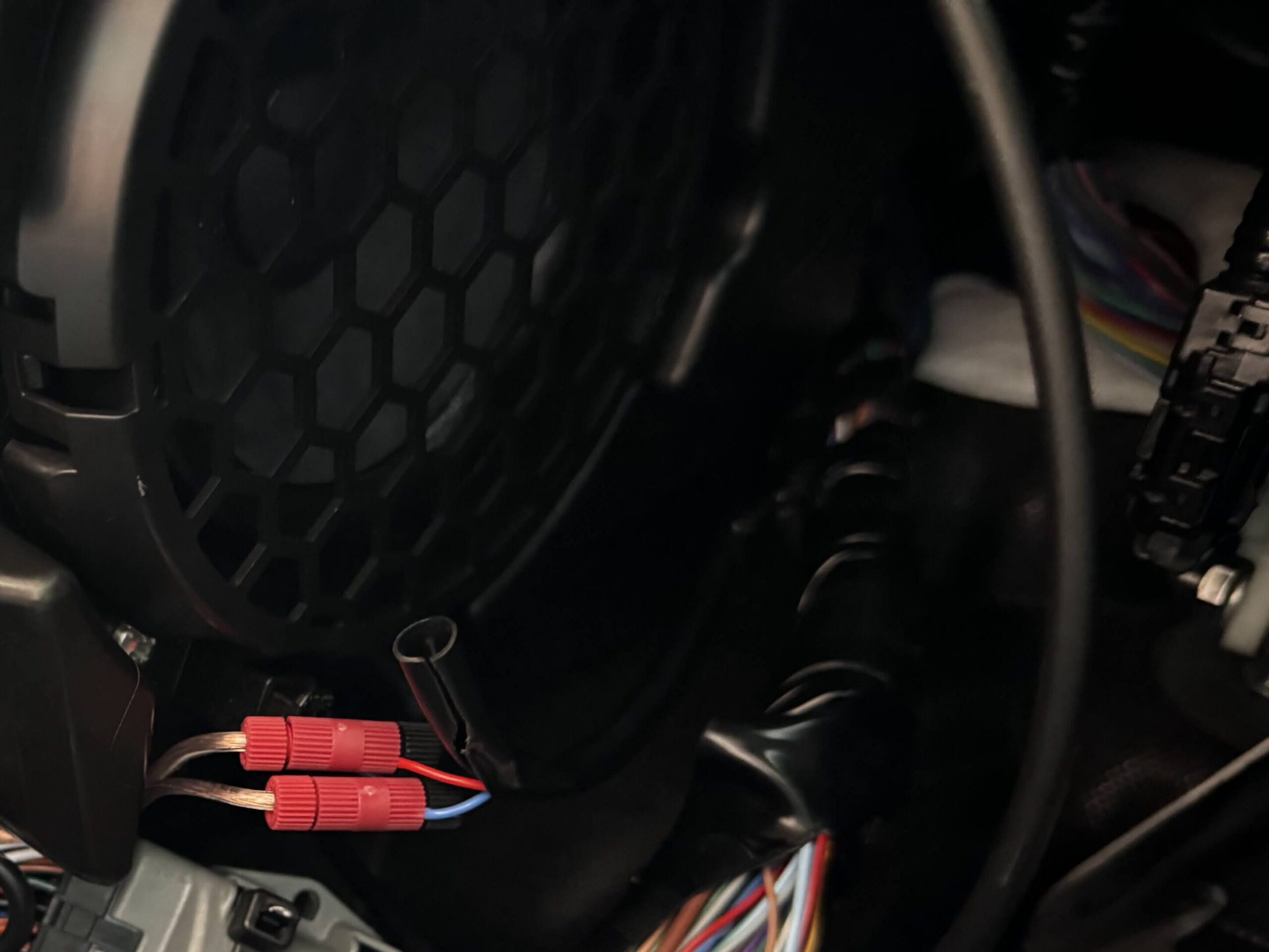 Determining the polarity of the existing wires was a bit of a guess, but I measured the impedance and ran with a matching combination for the Left & Right. You can always flip the phase on the remote, which I mounted by the steering wheel.