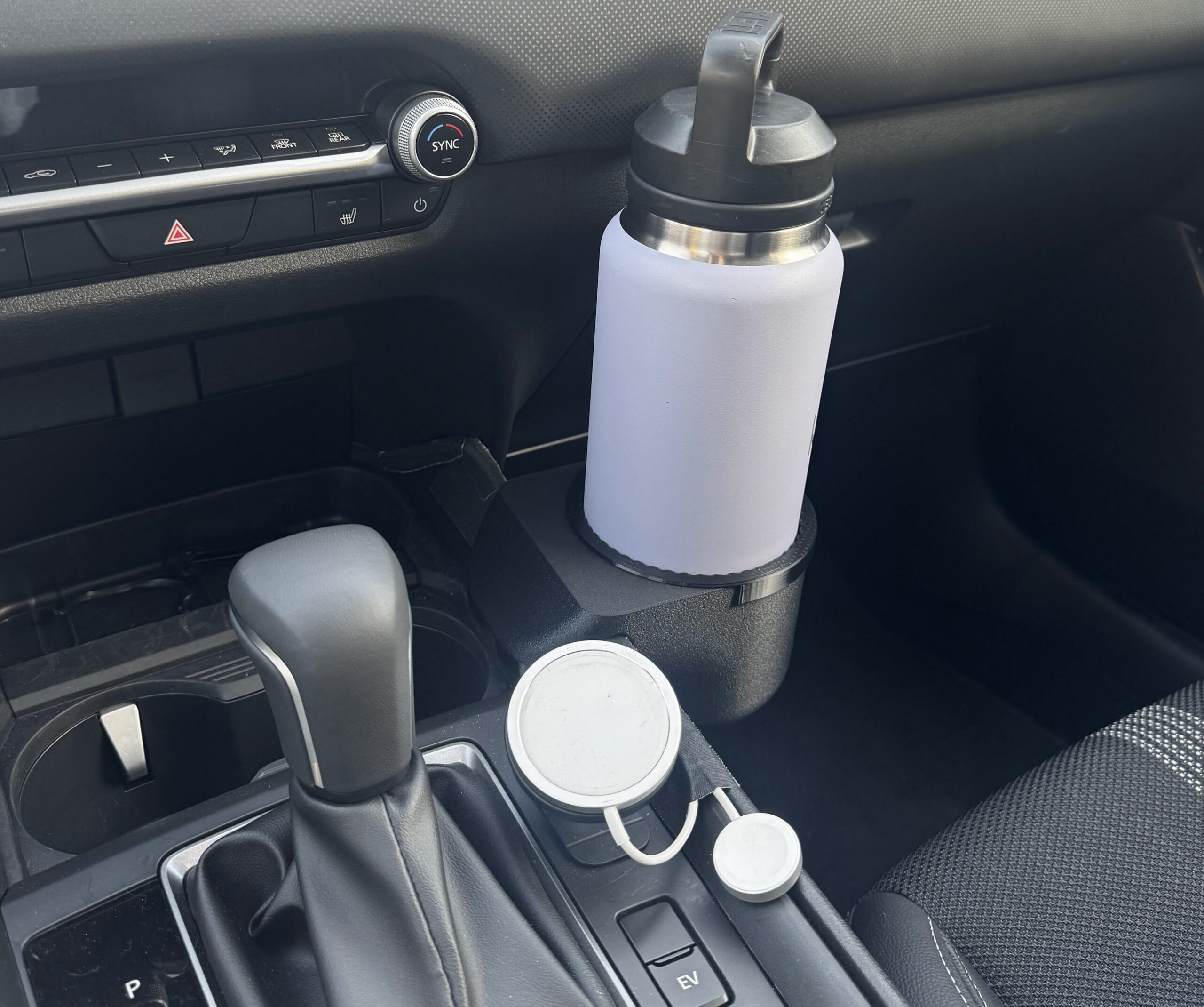 Bonus: 3D printed water bottle mount for my completely normal sized 32oz/1L water bottle that doesn’t fit in the cup holder for some reason.